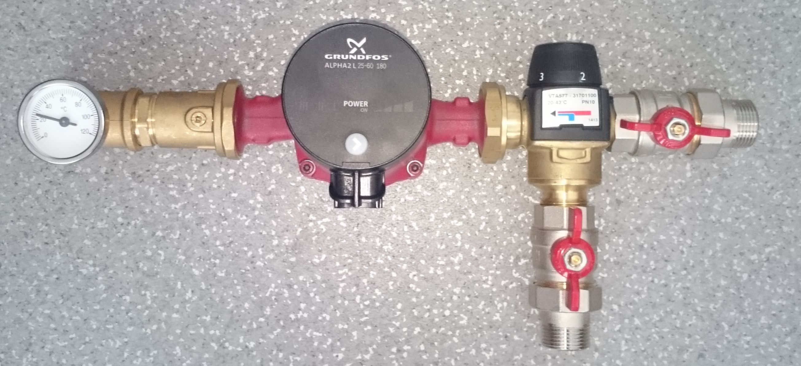 säätölämpötila 20-55 °C, Esbe VTA377 ja Grundfos ALPHA1L 25-60 180